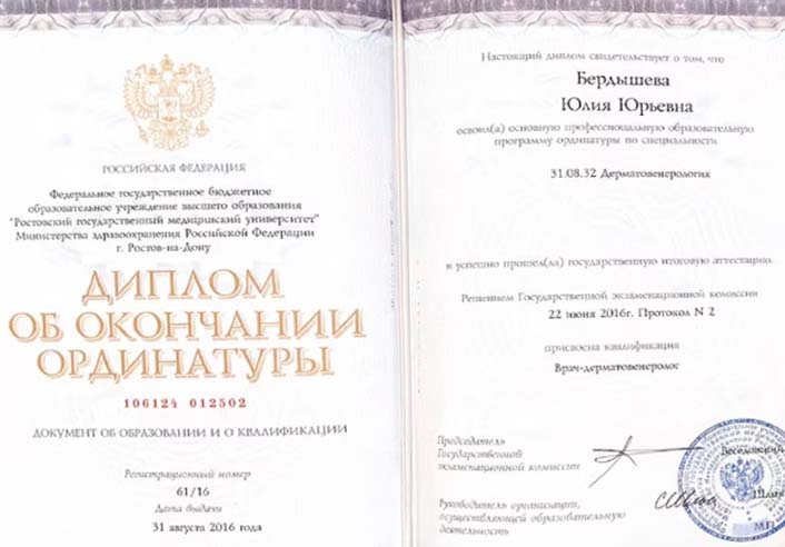 • 1997 г. – Базовое образование: Ростовский государственный медицинский университет (лечебное дело);